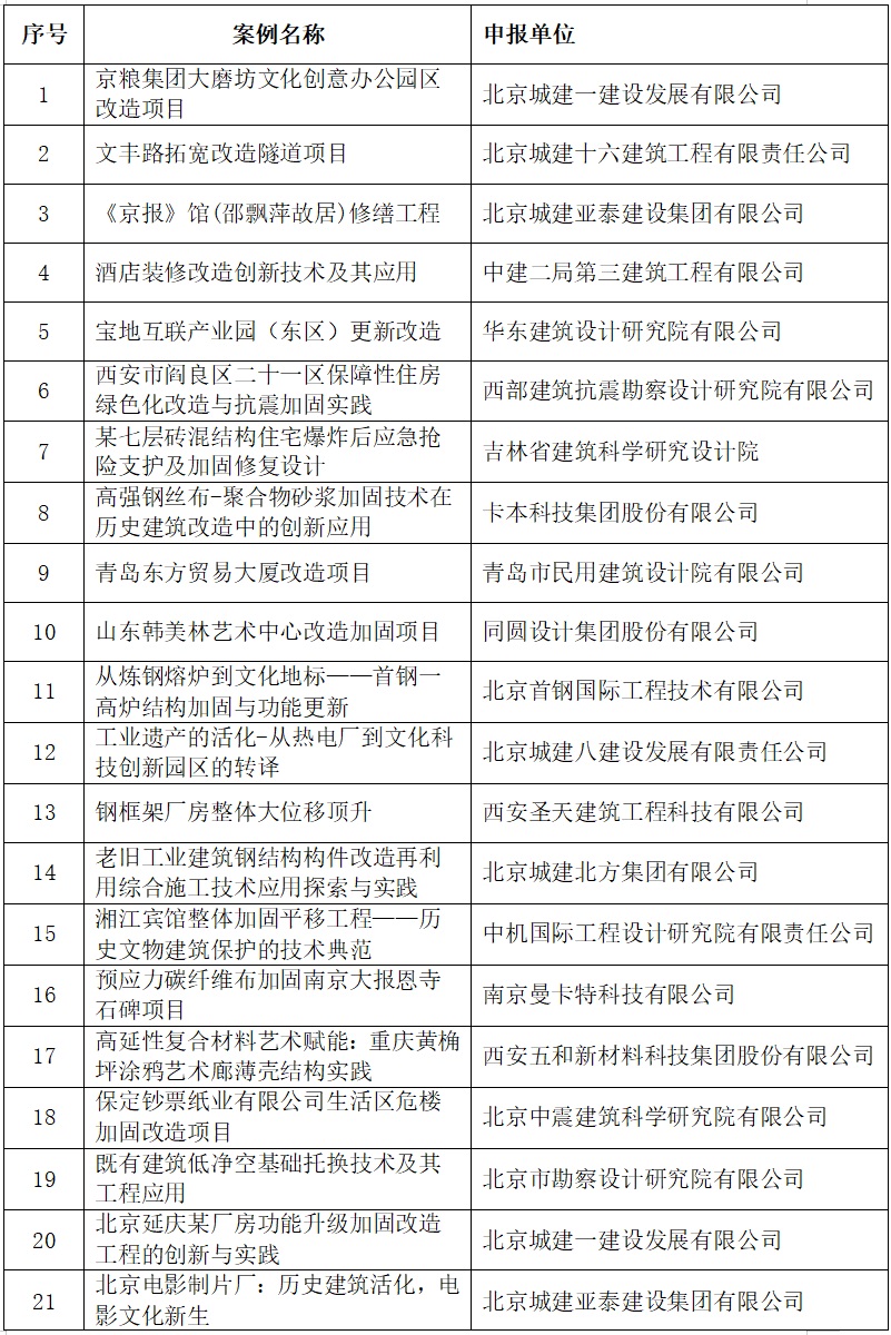 为积极响应国家城市更新战略部署,集中展示工程改造加固领域在城市更新进程中的创新成果与实践经验,加速先进技术在该领域的转化应用与普及推广,BRAC(中国建筑节能协会工程改造与加固分会)于2025年5月至9月组织开展了“2024~2025年度中国城市更新之工程改造加固领域案例”征集活动,遴选出26个高质量案例,辑录成册,于2025年10月14日第八届全国既有建筑加固与改造技术交流大会召开之际正式发布。